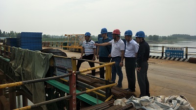 朱总视察罗家湾跨河三桥的柱墩(12#、13#)钢围堰施工,提出监理工作的控制要点