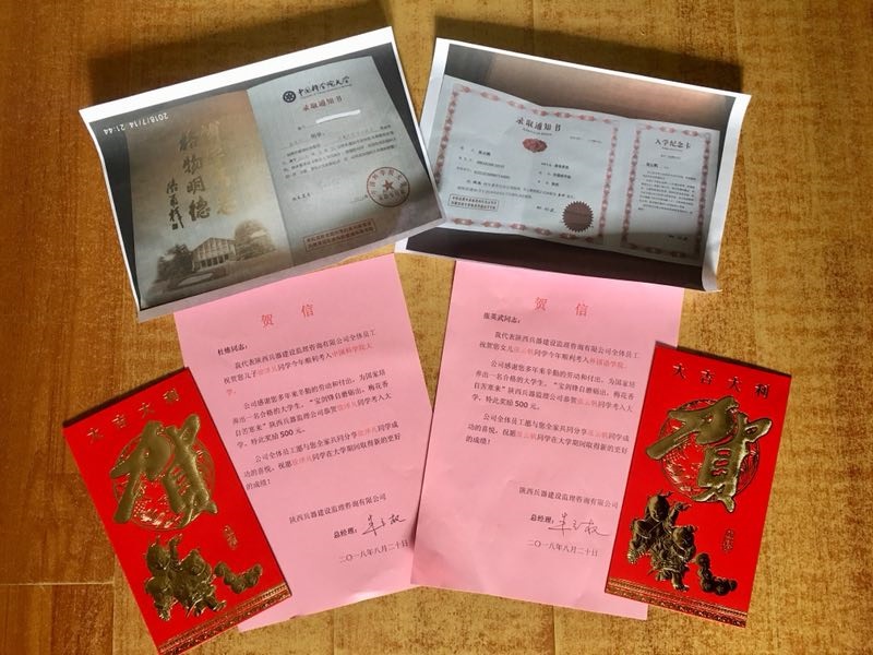 18年的斗转星移,12年的寒窗苦读。在这个金色的秋天,这个飘香的季节,在这个收获的时刻,2018年兵器监理公司喜获两名员工子弟没有辜负家长、老师和朋友们的希望,刻苦学习,努力钻研。为实现自己的理想勤奋苦读,不断取得优异的成绩,如今他们金榜题名。在新学期开学前夕,公司总经理朱立权同志怀着激动的心情,代表兵器监理公司向今年考入大学的两名学生,分别发出热情洋溢的《贺信》,感谢家长多年的呵护与栽培,为国家培养出优秀的人才,向今年取得优异成绩考入大学的徐泽凡、张云帆的同学致以最美好的祝福,并代表公司对即将入学的大学生进行奖励。