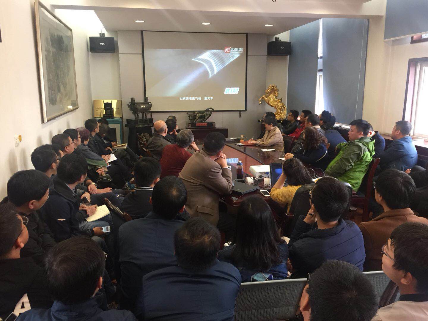 首先由办公室赵甜同志,从新技术的产生、什么事BIM、BIM的价值、BIM 的应用空间(前景)及状态、BIM在监理企业的未来发展几个方面,为全体与会人员展现了BIM 技术在目前建筑行业的应用及前景。