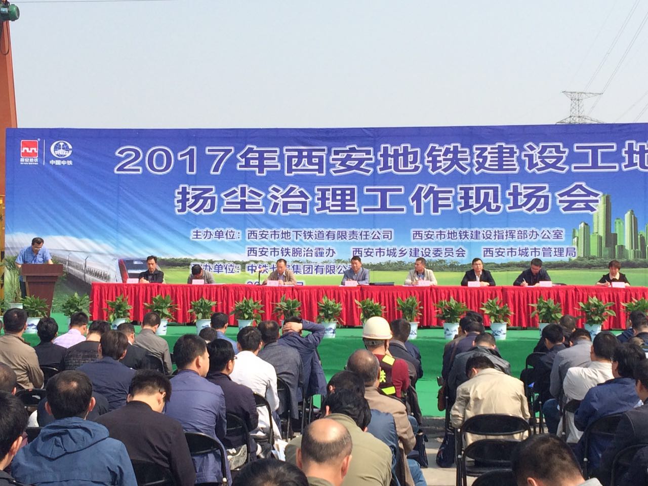 2017年4月27日上午,《西安地铁建设工地扬尘治理工作现场会》在我公司监理的西安地铁六号线一期工程(南客站-劳动南路站)土建监理项目D6TJJL-2标段锦业二路站施工现场顺利召开。现场会由地铁公司企划处处长曹振主持,西安市建委、市铁腕治霾办、市城管局、地铁公司有关领导及参加地铁建设施工、监理单位约400人参加了现场会。