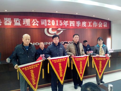 会上公司对四季度工地检查评比中,表现突出的金地湖城项目组、地铁信息项目组、中冶长安大都项目组、天地源A项目组颁发流动红旗及奖金。