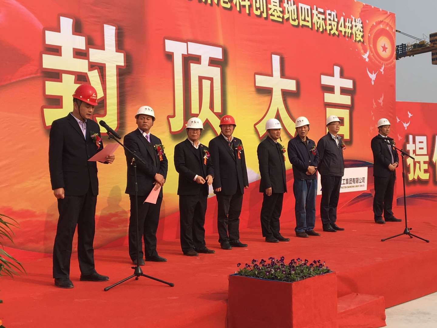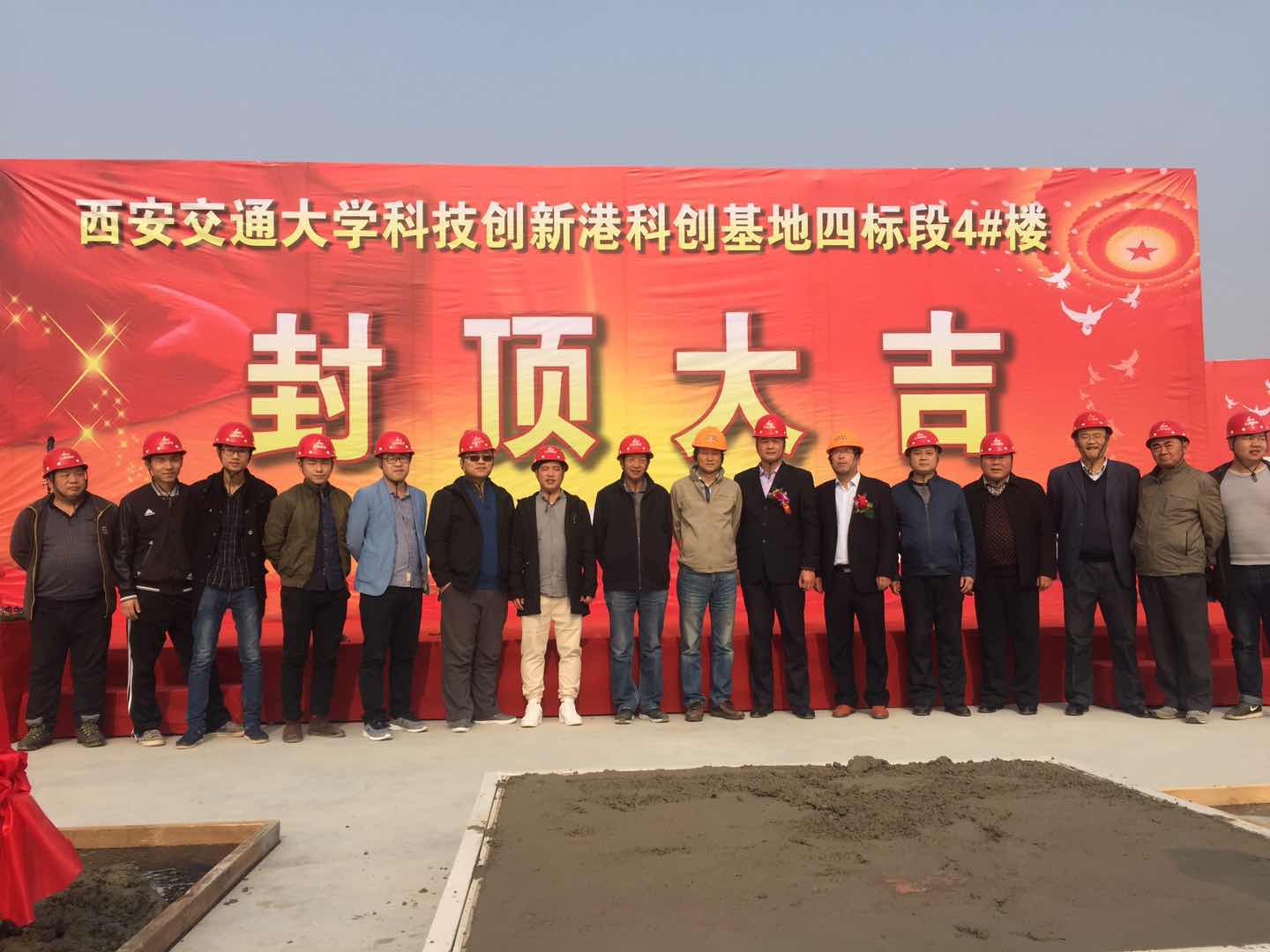 在工程现场会议室首先由4#楼施工企业陕西建工集团第四工程部董事长张西平,向大家介绍了西安交通大学科技创新港科创基地4#楼的施工情况。并由陕建集团项目负责人沈兰康总经理给各位领导汇报了4#楼工程建设过程,监理单位王为民代表陕西兵器建设监理咨询有限公司作封顶致辞。西咸新区交大科技创新港发展有限公司董事长董天信发表了热情洋溢的讲话,他对4#楼主体工程顺利封顶表示热烈的祝贺,对各参建单位的辛勤付出表示衷心的感谢,对奋战在一线的建设者们致以诚挚的慰问,他要求大家继续发扬团结协作、顽强拼搏的精神,坚持不懈,不断进取,确保工程圆满完工。伴着欢快喜庆的氛围,参加仪式的各位领导共同为工程浇筑了最后一方混凝土,封顶仪式完美落幕。